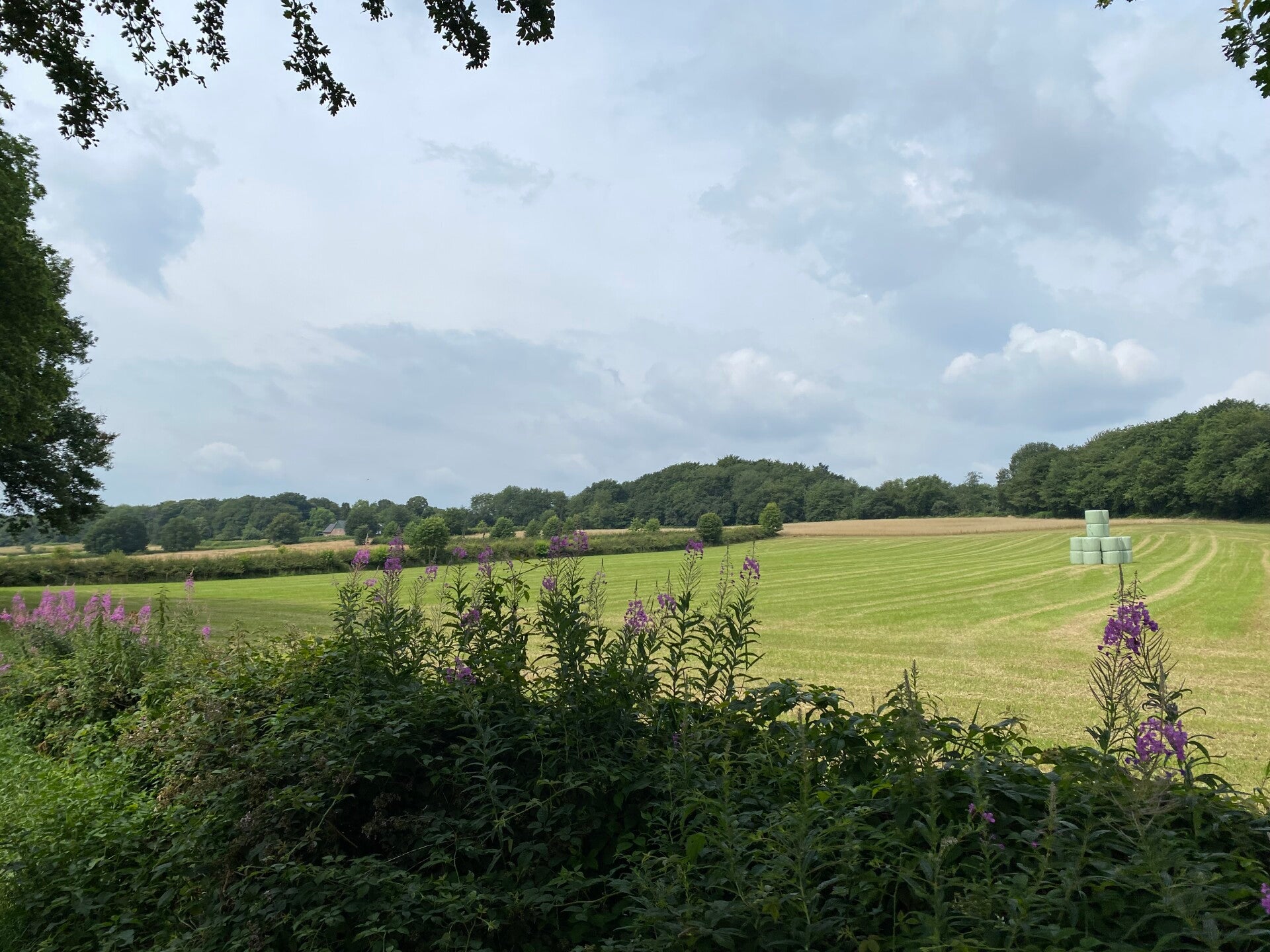 Vandaag een extra gezellige etappe want we hebben twee gasten, Hein en Gerry lopen een dagje mee. We starten rond 10:00 uur, vanuit het levendige centrum van Groesbeek, het heuvelachtige bijna Duitse dorp achter Nijmegen. Zodra we het dorp verlaten lopen we opnieuw direct een bosgebied in waar we genieten van de rust, de stilte en de goede gesprekken op deze zaterdagochtend.